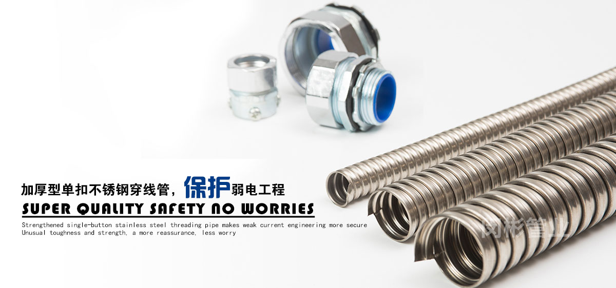 除此之外,公司還致力于金屬軟管接頭,普利卡管,普利卡接頭,不銹鋼穿線管的銷售。公司本著品種多、質量優(yōu)、服務好的宗旨,不斷開發(fā)、創新產品,以滿足日益發(fā)展的市場需要。產品主要包括:金屬軟管接頭 ,橋架接頭,塑料軟管接頭,AD接頭,不銹鋼接頭,普利卡接頭,包塑金屬軟管,不銹鋼軟管,不銹鋼編織軟管,普利卡軟管,尼龍軟管,塑料波紋管,尼龍拖鏈等機床配件。產品廣泛應用于建筑、機床、鐵路、車輛、化工、汽車、監(jiān)控、建筑裝修、建筑裝飾、建材、裝修裝飾等行業。上海閔彬管業有限公司高質量包塑管在實際使用中多家工程單位的認可、使用與推廣。